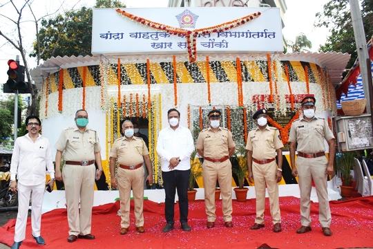 Mr Ronnie Rodrigues took the onus of providing better facilities to the people who are relentlessly working towards keeping people safe. He has always been helping needy people. Since last year’s national lockdown to this year’s state janata curfew he has been helping umpteen number of people with ration-kits and money. Mr Ronnie assembled his team and took the onus of repairing and redeveloping the sub-chowky at Khar. Within a few months it has turned into a plush office with moden amenities including air conditioning. On 31st May 2021 the new swanky Khar police sub-chowky was inaugurated at the hands of Hon MLA and former minister Advocate Ashish Shelar. Shri Dattatray Bhargude, ACP Bandra Div, Shri Parmeshwar Ganame Sr PI Bandra Traffic Div, Shri Abhay Dhuri ACP Central Traffic and many others from the police department were present at the occasion. Hon Corporator Swapna Mhatre too was present during the inauguration.