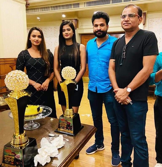 भोजपुरी सिनेमा के सुपरस्टार रितेश पांडे के बम्पर सांग “लवंडिया लंदन से लाएँगे” ने 200 मिलियन व्यूज का आंकड़ा पार कर लिया है। इस बड़ी सफलता का जश्न वाराणसी के फाइव स्टार होटल ताज गंगा में एक बेहतरीन केक काटकर बहुत धूमधाम से मनाया गया। इस सेलेब्रेशन के मौके पर इस धांसू गीत से जुड़ी हुई पूरी टीम को एक शानदार ट्रॉफी देकर सम्मानित किया गया। इस अवसर पर वर्ल्डवाइड रिकॉर्ड्स भोजपुरी के ओनर रत्नाकर कुमार, रितेश पांडे, नीलम गिरी, प्रियंका रेवड़ी, प्रियांशू सिंह, पल्लवी गिरी, संगीतकार आशीष वर्मा, गीतकार आर एस प्रीतम, वीडियो डायरेक्टर रवि पंडित सहित भोजपुरी इंडस्ट्री की कई दिग्गज हस्तियां मौजूद रहीं। सभी ने जश्न मनाया और पूरी टीम को बधाई और ढेर सारी शुभकामनाएं दीं।