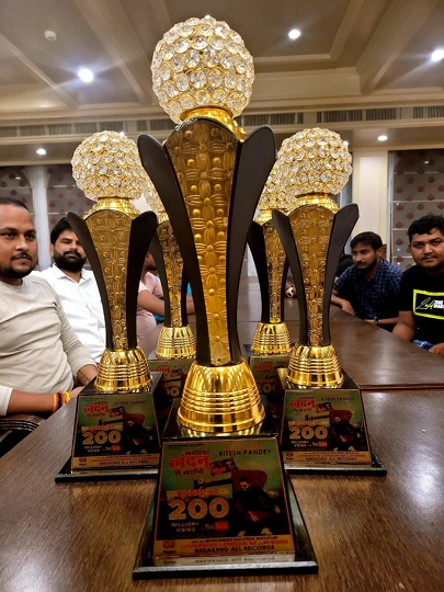 आपको बता दें कि सुनहरे रंग की बेहतरीन ट्रॉफी सभी टीम मेम्बर्स को दी गई जिसपर लवंडिया लंदन से लाएंगे 200 मिलियन व्यूज दर्ज है। उल्लेखनीय है कि वर्ल्डवाइड रिकॉर्ड्स भोजपुरी से रिलीज हुए इस वीडियो सांग की इतनी बड़ी सफलता पर यह जश्न मनाया गया।