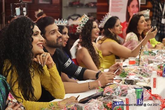 The Day-1 (17th Oct) began with a grand welcome to all the contestants in the airport look with goodie bags sponsored by Pan Aroma, Rite bite Max Protein, Alif Bakers and T-shirts by Fresh Bombay Groceries vegetables, fruits & more. It was then followed by styling grooming lectures by Dhwani Paradia & Akshita Vivek, Official Stylist, Da- Da Apparel. The contestants then practiced fashion walk. The evening began with talent round; followed by glamorous DJ party. Dr Neelam Paradia birthday was welcomed with beautifully cake crafted by “The Bake Room”.