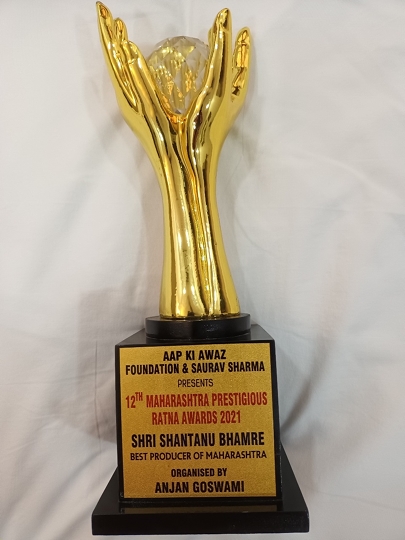 आप की आवाज़ फाउंडेशन द्वारा 12वें महाराष्ट्र रत्न प्रतिष्ठित पुरस्कारों में शांतनु भामारे को महाराष्ट्र के सर्वश्रेष्ठ निर्माता पुरस्कार से सम्मानित किया गया.  ये अवॉर्ड समारोह होटल रंग शारदा, बांद्रा (पश्चिम), मुंबई में आयोजित किया गया था.  पुरस्कार समारोह के अध्यक्ष और आयोजक अंजन गोस्वामी हैं।  श्री गजेंद्र चौहान, श्री अरुण बख्शी और श्री दिलीप सेन के हाथों शांतनु भामारे को सम्मानित किया गया।