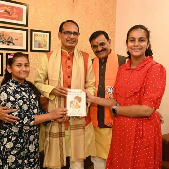 The Chief Minister of Madhya Pradesh Shri Shivraj Singh Chouhan blessed the both kids for their success in their life and all the best for the book.