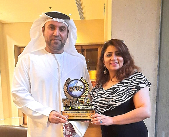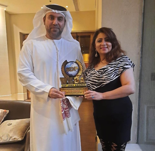 मुम्बई। जुहू स्थित जे डब्ल्यू मैरियट फाइव स्टार होटल में व्यवसायी डॉ बू अब्दुल्ला को अभिनेत्री और आईएडब्ल्यूए एनजीओ की अध्यक्ष दलजीत कौर द्वारा सम्मानित किया गया। उन्हें कोविड 19 के संकट में कोविड के प्रति उनकी गतिविधियों के लिए एसडीपी वर्ल्ड एक्सीलेंस बिजनेस अवार्ड और कोविड योद्धा पुरस्कार से सम्मानित किया गया।
