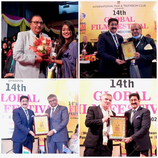 रंगीन सजावट, विशाल द्वार, फिल्म निर्माताओं के बड़े पोस्टर, अच्छे कपड़े पहने और उत्साही फिल्म-प्रेमी इस आयोजन में आध्यात्मिक ऊर्जा जोड़ते हुए उत्सुकता से इस अंतर्राष्ट्रीय उत्सव की प्रतीक्षा कर रहे थे, 14 वें वैश्विक फिल्म महोत्सव नोएडा 2021, मारवाह स्टूडियो के परिसर में शुरू होने के लिए आईएफटीसी-इंटरनेशनल फिल्म एंड टेलीविजन क्लब द्वारा एएएफटी और आईसीएमईआई-इंटरनेशल चैंबर ऑफ मीडिया एंड एंटरटेनमेंट इंडस्ट्री के सहयोग से डिजाइन किया गया है।