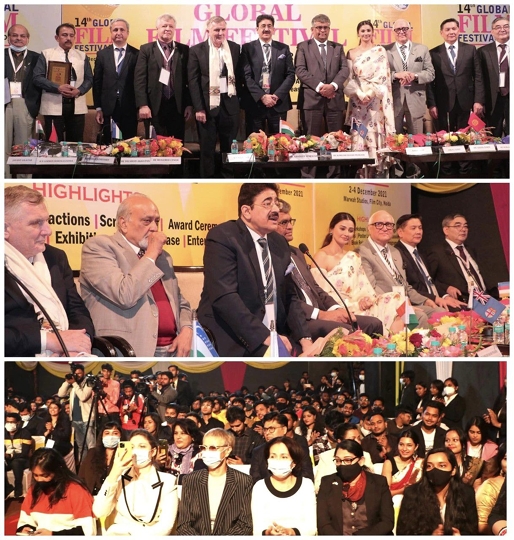रंगीन सजावट, विशाल द्वार, फिल्म निर्माताओं के बड़े पोस्टर, अच्छे कपड़े पहने और उत्साही फिल्म-प्रेमी इस आयोजन में आध्यात्मिक ऊर्जा जोड़ते हुए उत्सुकता से इस अंतर्राष्ट्रीय उत्सव की प्रतीक्षा कर रहे थे, 14 वें वैश्विक फिल्म महोत्सव नोएडा 2021, मारवाह स्टूडियो के परिसर में शुरू होने के लिए आईएफटीसी-इंटरनेशनल फिल्म एंड टेलीविजन क्लब द्वारा एएएफटी और आईसीएमईआई-इंटरनेशल चैंबर ऑफ मीडिया एंड एंटरटेनमेंट इंडस्ट्री के सहयोग से डिजाइन किया गया है।