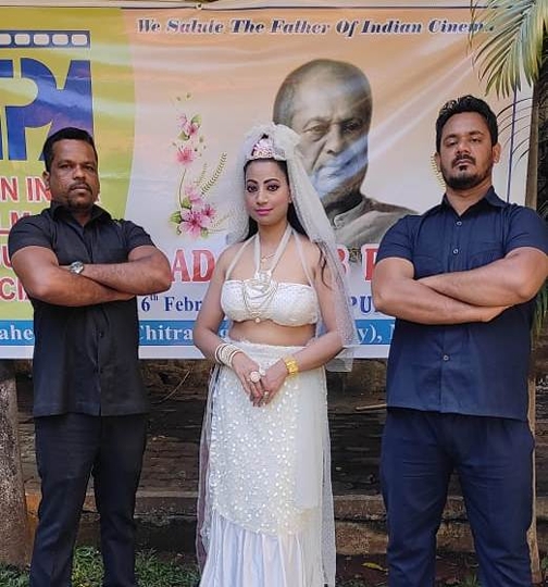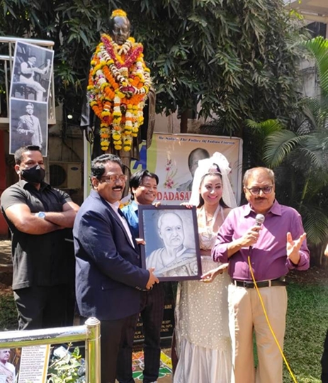 Vandana Gautam Great Grand daughter of dadasaheb Phalke..Who is the father of Indian CINEMA …reached to Mumbai for tribute on her Great Grand father’s memorial day. On this day Vandana Gautam’s Father Dr. ChandraShekhar Pushkar..and mother Pushpa Pushkar also reached to tribute..they spoted at Dadasaheb Phalke statue at Goregaon Filmcity Mumbai.