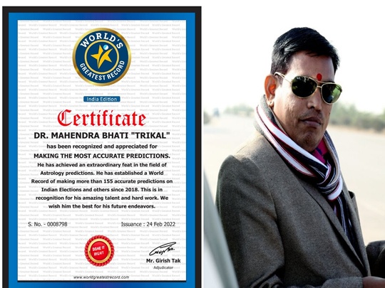 डॉ. महेन्द्र भाटी ‘त्रिकाल’ का नाम (Dr Mahendra Bhati TRIKAL) विश्व महानतम रिकॉर्ड (World Greatest Record) में दर्ज हुआ