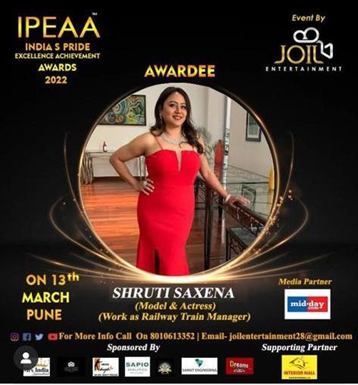 Actress Shruti Saxena Jury for Teen Mr Miss Mrs Universe 2022 And Honoured With IPEAA Awards In Pune