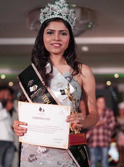 I have always aspired to be a strong lady who achieves her goals. And I believe this is one of the main reasons I have achieved titles such as Odisha beauty expo 2020-Miss best walk , Miss Tiara Queen of Bharat 2021-1st Runner up, and Face of Central India 2021 – Miss Perfect, and also Miss India runway iconic 2022 winner. Miss universe 2022 winner and Miss photogenic.