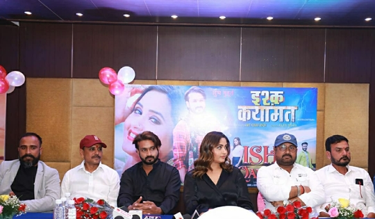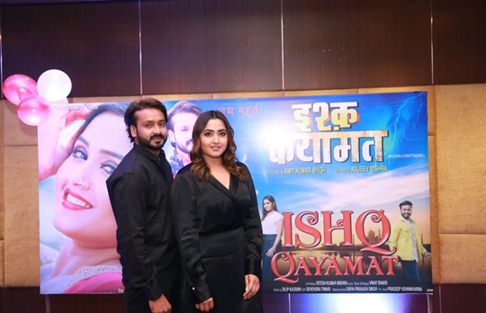 u9 फिल्म्स इंटरटेनमेंट के बैनर तले निर्मित की जा रही फ़िल्म ‘इश्क कयामत’ का निर्माण दो भाषा भोजपुरी और छत्तीसगढ़ी में किया जा रहा है, ताकि दोनों फिल्म इंडस्ट्री के ऑडिएंस भरपूर मनोरंजन कर सकें. इस फिल्म का बीते दिनों छत्तीसगढ़ के रायपुर में भव्य मुहूर्त किया गया. जिसमें भोजपुरी सुपरस्टार काजल राघवानी व छत्तीसगढ़ी फिल्मो के सुपरस्टार मन कुरैशी लीड रोल में हैं. रायपुर के सयाजी होटल में भव्य कार्यक्रम आयोजित कर फ़िल्म इश्क कयामत का मुहूर्त शार्ट लिया गया। मौके पर दोनों स्टार ब्लैक ड्रेस में बेहद ग्लैमरस लुक में नजर आए. फ़िल्म के निर्माता अमित कुमार सिंह हैं. कुशल निर्देशन की बागडोर राजीव मिश्रा संभाल रहे हैं. लेखक दिलीप कौशिक, सह निर्माता रितेश कुमार मिश्रा, गीत-संगीत व डायलॉग विनय बिहारी ने लिखा है. डीओपी देवेंद्र तिवारी हैं.