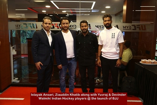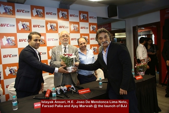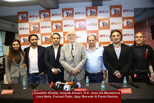 In the presence of the cabinet minister for Animal Husbandry, Dairy Development,Sports & Youth Welfare of Maharashtra, Shri. Sunil Kedar, H.E João de Mendonça Lima Neto, Consulate General of Brazil and Mr. Ziauddin Khatib, 3-time World Kickboxing Champion & President of Jiu Jitsu Association of Maharashtra, Mr. Farzad Palia and Mr. Istayak Ansari Master Licensees of UFC GYM India announce the commencement of the programme.