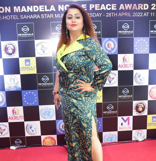 “A winner is a dreamer who never gives up” these precious words said by Nelson Mandela have a great impact on everyone’s life. Nelson Mandela Noble Peace Award Academy had presented Nelson Mandela Noble Peace Award and Honorary Doctorate Degree at Sahara Star on 28th April, 2022. Producer and Social Activist Eram Faridi were honoured to be nominated for such a dignitary award. She was been awarded Doctorate Degree under “Social Work and Film Production”. She was been awarded by Dubai’s HH Sheikh Majid Rashid the ruling family member of United Arabs Emirates ,UAE Businessman Bu Abdullah ,HON Sambhaji Raje member of Rajya Sabha, Vaishnavi Samant, Dr.Pralhad Modi the brother of respected Prime Minister Narendra Modi and Shailendra Ganeshe – Educationalist,
