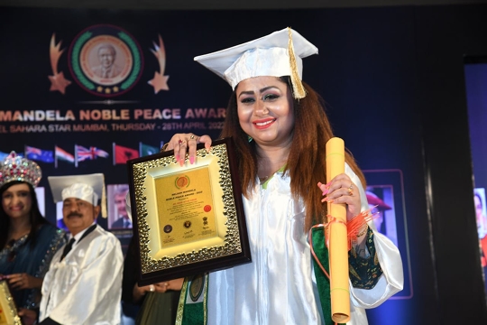 Producer and Social Activist Eram Faridi were Honoured with Nelson Mandela Noble Peace Award and Honorary Doctorate Degree