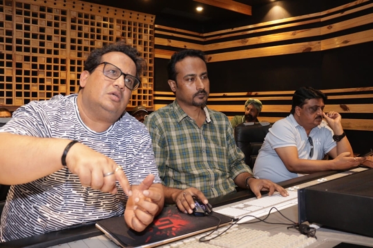 मुम्बई में एक स्टूडियो में ‘H & K म्यूज़िक’ के लॉन्च के मौके पर निर्माता हरीश शर्मा, कविता शर्मा के अलावा जाने-माने गायक अमन त्रिखा और गीतकार व संगीतकार प्रवीण भारद्वाज भी मौजूद थे.