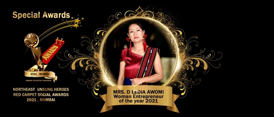 Mrs.D Ledia Awomi, Founder of “LA Creations and Enterprises”from Nagaland awarded “Woman Entrepreneur of the year 2021. She contributes to uplift women economic growth and prosperity, With her visionary ideas and relentless spirit.