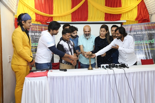 Grand Muhurat of English film Green Card was held at Vyanjan Banquet Hall in Andheri West, Mumbai. The event was organized and managed by FANTABULOUS ZONE. The muhurat program was inaugurated by actor and director Sandeep Malani, special guest Kriti Raj Singh, director Saurabh Bhardwaj and creative head of this film and actor Rishabh Bhardwaj, actress Anjali Banerjee by jointly lighting the lamp.