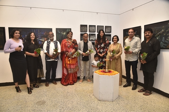 His exhibition at Jehangir Art Gallery, Gallery 3, titled Landscape of Identities was inaugurated by Padma Shri Sudharak Olwe, art collector Parvez Damania, playback singer Madhushree and her composer husband Robby Badal, actress Rupali Suri, celeb nutritionist Rusha Madhwani and director-egalitarian earth warrior Anusha Srinivasan Iyer, sculptor-curator Sanjay Nikam among others.