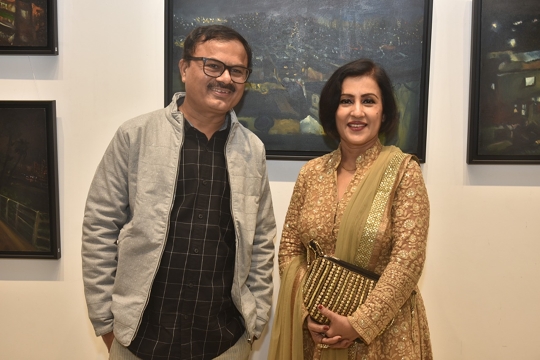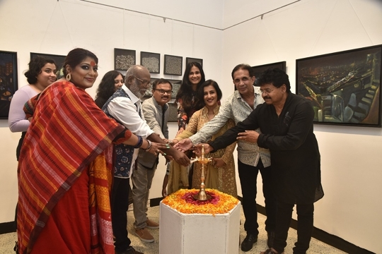 His exhibition at Jehangir Art Gallery, Gallery 3, titled Landscape of Identities was inaugurated by Padma Shri Sudharak Olwe, art collector Parvez Damania, playback singer Madhushree and her composer husband Robby Badal, actress Rupali Suri, celeb nutritionist Rusha Madhwani and director-egalitarian earth warrior Anusha Srinivasan Iyer, sculptor-curator Sanjay Nikam among others.