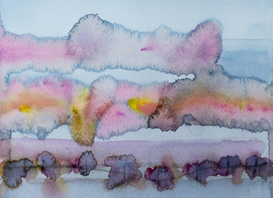 Subhash Awchat’s present series of watercolours is a reflection of time, its structure, not measured by a watch but one that is witnessed when we fall humble into a magnificent landscape. In French we would say “aquarelles au fils du temps” or watercolours over the passage of time.