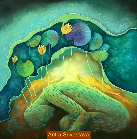 Akansha Punjabi, Jagadish Ray, Lata Malani, Shruti Srivastava, Darshan Mahajan, Archana Sharma, Neha Agrawal, Niyati Amlani, Pratibha Goel, Seema Oza, Shalini Gupta, Sonal Salekar, Sushma Oza, Vineet Kaur exhibiting at MAF have dealt with distinct colour to illustrate their visual ideas in ‘figurative’ genre, sometime in simple forms but making complex reading, creating strong narrative content.