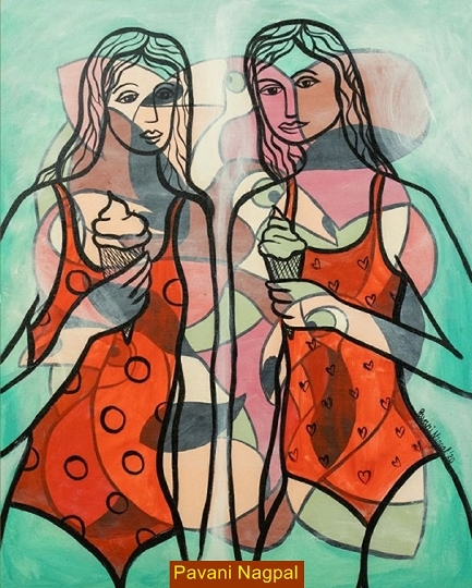 The use of geometric forms to create rhythmic patterns and fluid forms in the works of Annarapu Narendra, Jyoti Sharma, Mohit Jangid, Nirja Shah, Prachi Gala, Princy Jain, Uchit Turakhia and Vaishali Chanda is an experiment in illusion art that trick the eye and mind to perceive images different than what they are on the pictorial surface. The assemblage by Rohan Kunthale, Serigraph by Trishna Bhati and woodcuts by three generation of artists in Dubey family, black & white photograph by Sangram Naik, and surreal compositions by Aditi Khandelwal, Kaushal Parikh, Kunwar S S Punwar, Madhu Kuruva, Naveena Ganjoo and Subarna Bagchi compels the viewer to take a second look at them. Female nudes when done by female artist acquire the different dimension; this is demonstrated in the works of Meenakshi Shukla and Payal Moni.