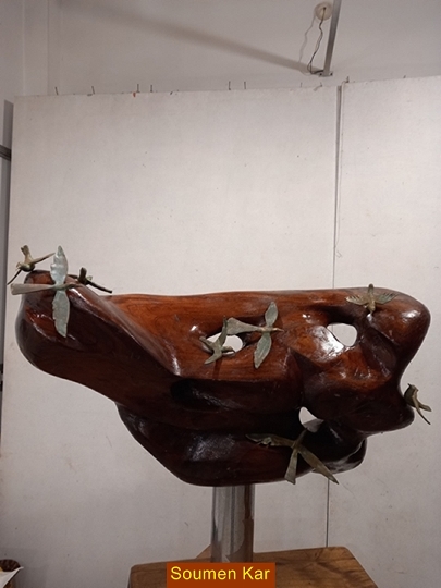 The inspiring force behind the works by B Meghmala, Deepak Mukherjee, Monalisa Parikh, Namrita Nagra, Paridhi Jain, Sayali Nagarkar, Sudha Ramkrishnan, Vikram Bhatti, Vinayak Nigam and Vishal Sabley is their belief and faith that prompted them to create an impressive and wondrous works of art which generates mystical aura and spiritual vibrations around them. The amount of detailing in sculptures by Devel Sharma, Pankaj Gadakh, Soumen Kar, and Sujit Kumar Mukhopadhyay