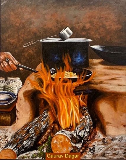 The Baroque animal painting tradition originated around seventeenth century in the western art world have found many followers across the world who portray animals, sometime using landscape as the background. Artist Alpana Dangi, Anna Kurian, Dipti Kumar, Rushan Shah and Shankar Rajput seems to be mesmerised by the beauty and power of different animals such as horses, bulls, elephants and stags. The other artists who got fascinated by wildlife are Haripriya Kulkarni, Jalpa Patel, Poonam Juvale, Praveena Parepalli and Saket Arbhi; their artworks are the visual treat for wild-life lovers visiting art fair. Viewers can select beautiful paintings from a charming variety of flying bird paintings executed dexterously by Anrita Basu, Bhaduri Shah Baria, Sanjivanee Bhoir and Shankar Pamarthy.