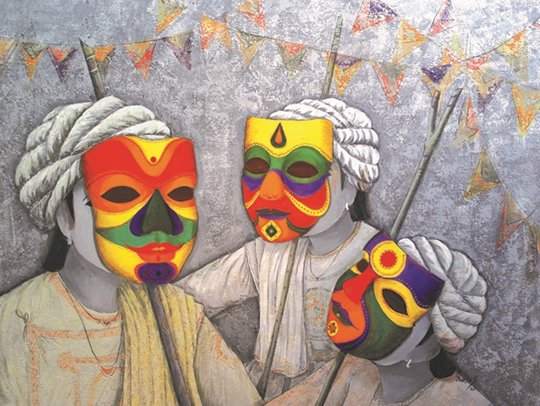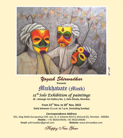The recent work presented by a contemporary artist Yogesh Shirwadkar in his 15th solo art exhibition presently under display at Jehangir Art Gallery, Mumbai reveals subtle nuances of vivid masks and their relevance as well as sanctity in human life. He has artistically adorned various works with the requisite tonal harmony and rhythm of apt colours and their resonance in order to depict the desired visual effects in sensitive human minds in the conducive environments.