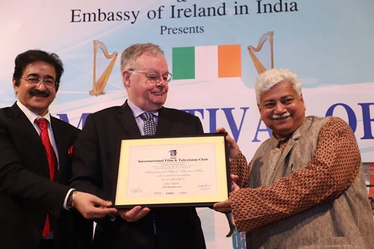 A scholarship of AAFT Asian Academy of Film and Television was presented to Irish Ambassador H.E. Brendan Ward on this occasion. Sandeep Marwah also presented Life Membership of International Film and Television Club to the dignities. An exhibition of paintings by Tanisha Bakshi was another attraction. The event was supported by Indo Ireland Film and Cultural Forum, International Chamber of Media and Entertainment Industry and World Peace Development and Research Foundation.