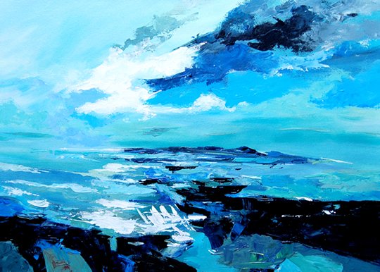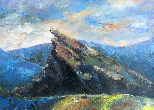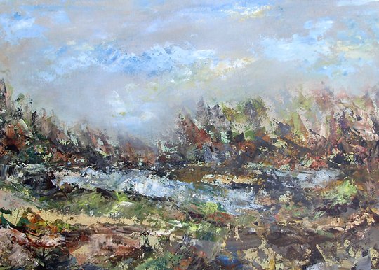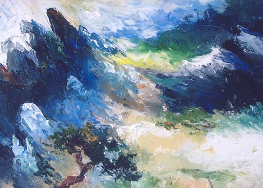 His present series reveals distinct elements of surrealism without losing their realistic appealing. He is passionate about portraying the formation of nature and its myriad portraits in vivid seasons and evolves from form to formless. His works depict the sublime beauty of creator through dramatic effects of lights and vivid colours alongwith dazzling of colour tones, multiple layering, granular textural surface impasto technique as well as prominent and bold calligraphic strokes at strategic arena. Other key elements are the evanescent aspects of landscapes with innovative use of air, light and colour rather than other aspects. Tactile textures and colour perspective being the integral part of his paintings, the works exemplify the nuances of minimalist approach along with the polyphonic sounds and essence of nature via the colour perspectives. The subtle luminosity, reflections, shadows and other related interactive movements and ingredients occupy a prominent place in his work. An optimistic approach and use of apt colours such as Sap green, Flake white, cadmium Yellow, Vermillion Red, Crimson Red, Cobalt Blue, Emerald Green, Turquoise Blue and many more have added unique dimension and visual perspective to his innovative work. His brush strokes are incredibly simple and maintain the same level of spontaneity and energy throughout the work. His individual style is a Key to his identity as an innovative and creative artist. He uses his canvasses and his work in the most innovative style to bring about transformative changes in the society via relevant messages.