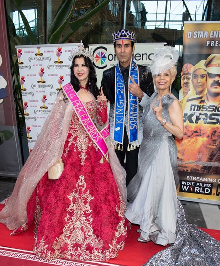 Dressed in white Shervani designed by Deepak Shah of More Mischief and styled ht Pooja Shah Bhandari and Jashank Bhandari, Sandip Soparrkar was crowned and honoured by Art4Peace Awards with the title of “King of Art4Peace” for his social work through “Dance for a Cause” and Ms Alma Dang an artist and a philanthropist from Mexico who has been working towards ending ignorance and exploitation of children was crowned “Queen of Art4Peace” at the prestigious Saban Theatre Beverly Hills, Los Angles, California, USA.