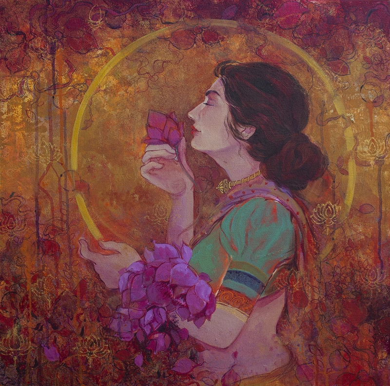 The present series illustrates her unique perceptions in an artistic style about various facets of womanhood via the story of every woman in different roles and responsibilities shouldered by her in life in pictorial visual expressions. She has illustrated various characteristics and qualities that are usually associated with women in the life journey which is an experience of being strong and vulnerable at the same time. The vivid works depict numerous ingredients and undercurrents that are normally associated with her role in life as a daughter, sister, wife and mother. The artistic presentation of her theme illustrates different feelings and sentimental mindscapes associated with womanhood in her life journey. She has endeavoured to depict women’s feelings, emotions, thoughts, her roles and vivid life experiences in a prominent way through her artwork. Being a woman, most of these experiences are via herself journey in different roles in life along with those observed and experienced by being associated/ involved in numerous activities around in various seasons and arenas in apt perspectives of visual arts. Her visual language of expressions is narrative and lucid as well as eloquent that easily shares a word with the viewer due to its simplicity and uniqueness.