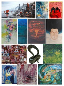 Variety of art works displayed in this exhibition are in realistic, semi realistic, abstract perceptive styles of artistic expressions. Paintings displayed here have been made in oils, water colours, acrylic colours, pen and ink, charcoal and mixed mediums and sculptures in bronze and mixed media etc. The art works mostly denote vivid realms of life and monumental heritage of our country in apt perspectives of visual fine arts incorporating several techniques and styles which truly bear testimony to the genuine talent and creativity of the participating artists in this show.