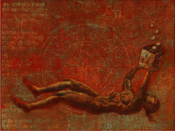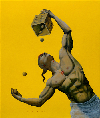 Do we have any meaningful control over our own lives or are we mere puppets dangling from the strings maneuvered by an ever-powerful entity? This is the proverbial and insistent question Deepak Mer has asked through his paintings – House of Gods.