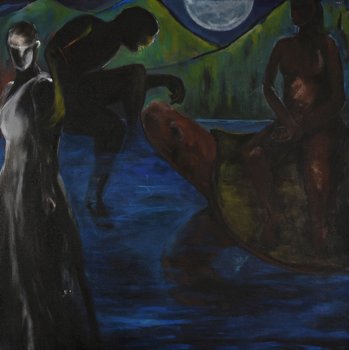 The wandering of mind and soul needs some place to open up. My recent series of paintings has got such space to explore. The present moment, has always a dual feeling of present and absent. The missing moment always travel with us and our wandering mind gets attracted to those whom you feel shall be yours. These missing moments are what I call shadow, they are almost everywhere. The animals in the painting are representation of curbed desires, the anthropomorphic forms that appears comes from anxiousness and split personality which is subtle and dramatic. No wonder the dramatization id shown always in night scenes because they are always hidden like mystery. You have to search and understand them the most vulnerable part in my work is the expression and gestures. I still feel it as incomplete process because the concept of my painting is abstract and can be better represented in abstract manner.
