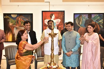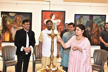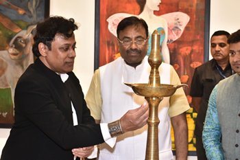 This exhibition was inaugurated by Mr. Sudhir Mungantiwar( Minister of Cultural Affairs, Forest, Fisheries, Government of Maharashtra in the presence of many art dignitaries.