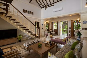 The villa is a plush 3-room structure in the heart of Goa. Pop into the upper deck and hear the waves by the coastline. The living area is equipped with heritage wonders like a 100 years old trunk, a classic record player, a retro wire telephone and so much more!