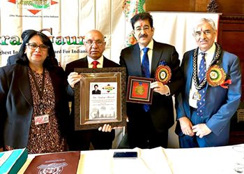 London: Sandeep Marwah, the founder of Noida Film City and President of Marwah Studios, has been honored once again at the House of Commons, British Parliament, for his outstanding contributions to the media and entertainment industry. Marwah, who is a nine-time world record holder, received the award and medal from Baroness Sandip Verma, a member of the House of Lords, Councillor Sunil Chopra, the Mayor of Southwark, and Virendra Sharma, a Member of Parliament House of Commons British Parliament, in recognition of his valuable contribution to the nation-building.