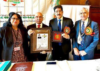 London: Sandeep Marwah, the founder of Noida Film City and President of Marwah Studios has not only added another glorious feather to his glittering cap, he has made India proud, too as he was honoured once again at the House of Commons of British Parliament recently for his outstanding contributions to the media and entertainment industry. Marwah, a nine-time world record holder, received the award and medal from Baroness Sandip Verma, member of the House of Lords, Councillor Sunil Chopra, the Mayor of Southwark and Virendra Sharma, Member of Parliament in House of Commons of British Parliament, in recognition of his valuable contribution to the nation-building also.