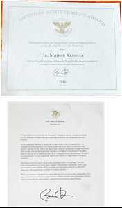 Prof. Dr. Madhu Krishan’s remarkable achievements include the prestigious ” US President’s LIFE TIME ACHIEVEMENT AWARD 2016 ” received from former Hon’ble President of USA Mr. Barack Obama, a testament to their extraordinary dedication and outstanding contributions to the cause of global peace and human excellence. Let us unite in a thunderous applause to recognize and celebrate Prof. Dr. Madhu Krishan’s invaluable contributions towards fostering a more peaceful world as a role model for World Peace .