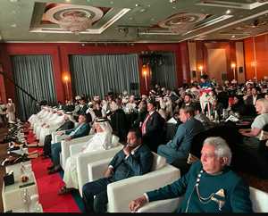 His Eminence Prof. Dr. Madhu Krishan & His Excellency Amb. Dr. Mohammed Aasim Rajikj on the stage presented the Human Excellence Platinum Award from the American University USA ( AUGP USA ) to the Royal Families His Excellency Shaikh Ahmed Bin Hamdan Bin Rashed Alnuaimi , His Excellency Shaikh Rashed Bin Hamdan Bin Rashed Alnuaimi & His Excellency Shaikh Humood Bin Hamdan Alnuaimi.