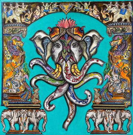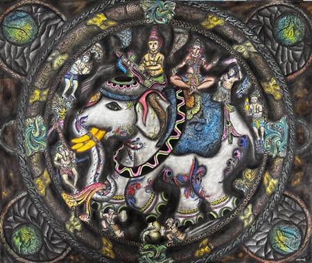 His upcoming solo exhibition, ‘Triparna: The Trinity of Art,’ at the Nehru Centre, Mumbai, exemplifies this unique synergy, offering a visual journey that seamlessly fuses these diverse traditions and popular cultural practices. Each painting invites the viewer into a world of personal religious and spiritual exploration, where Sarang deftly balances the intricate with the ethereal. Central to this collection are his works, which are based on Buddhist sculptures from around the world, starting from the historic Ajanta and Ellora cave art, as well as works from other regions where Buddhism has profoundly shaped culture, religion and philosophy.